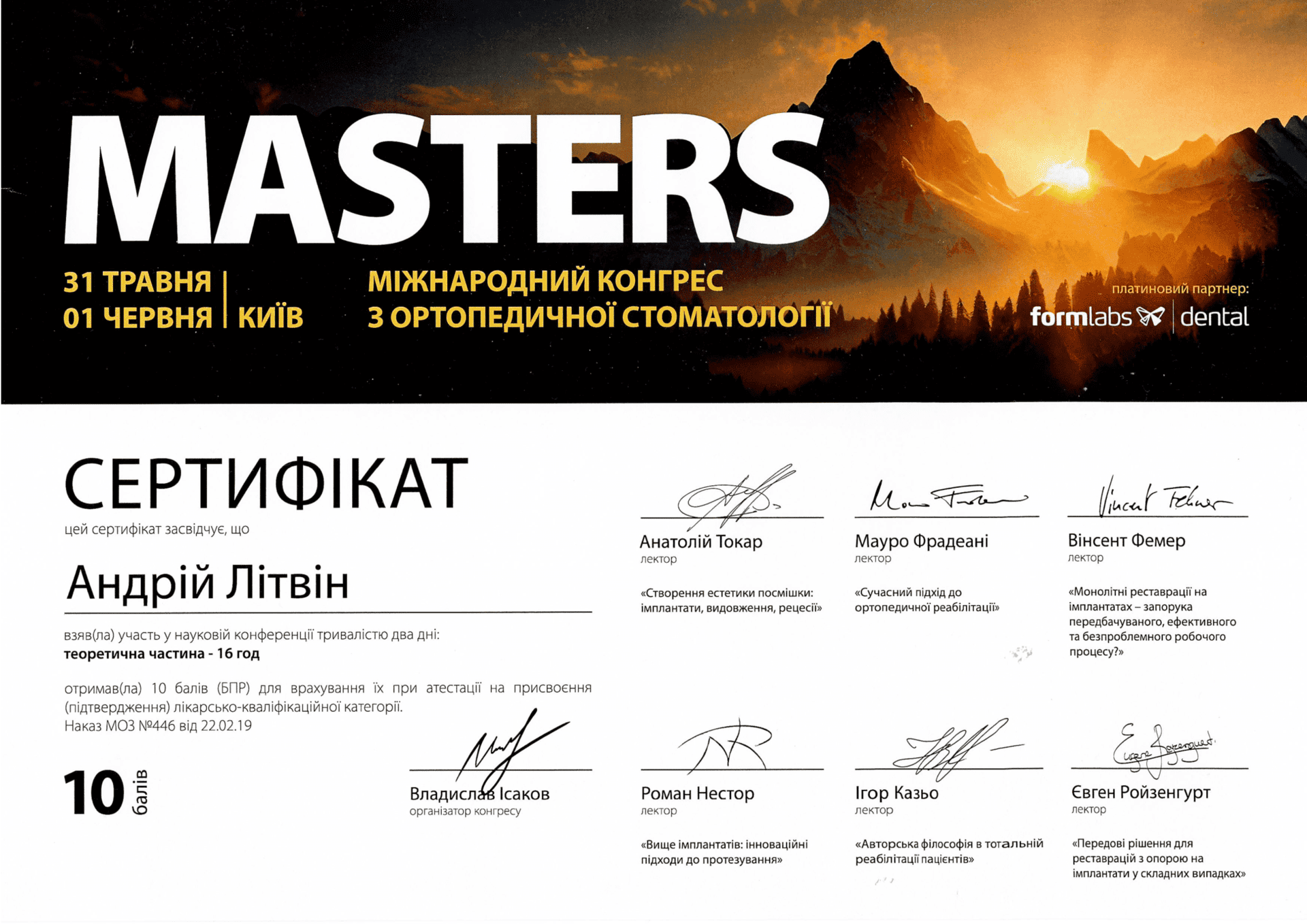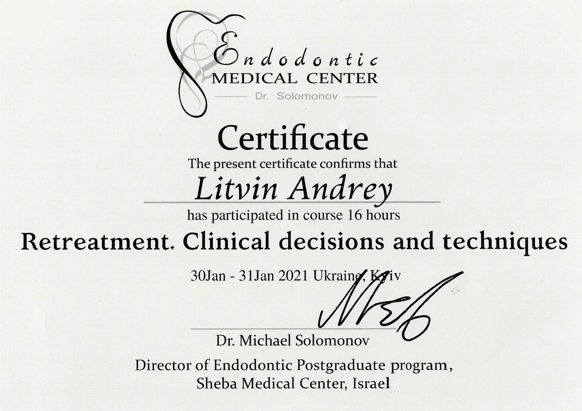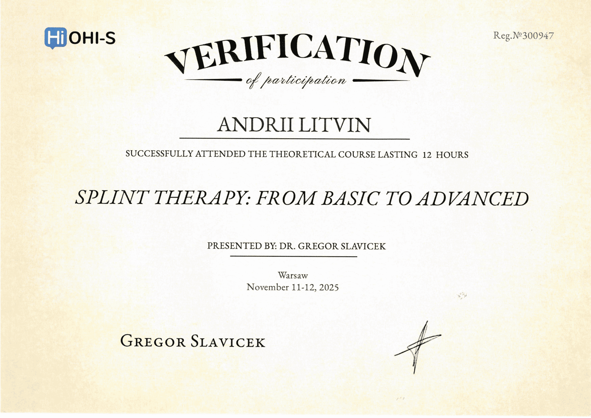 2018 — Ukończenie kursu klinicznego Art of the Microscope Enhanced Endodontics (Stanislav Geranin)