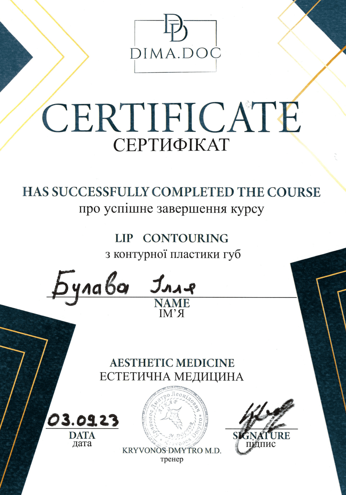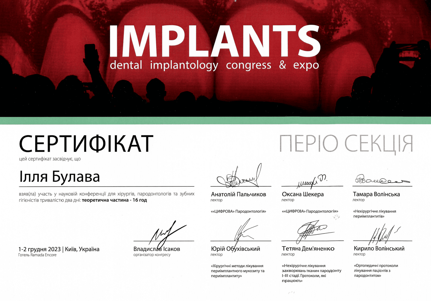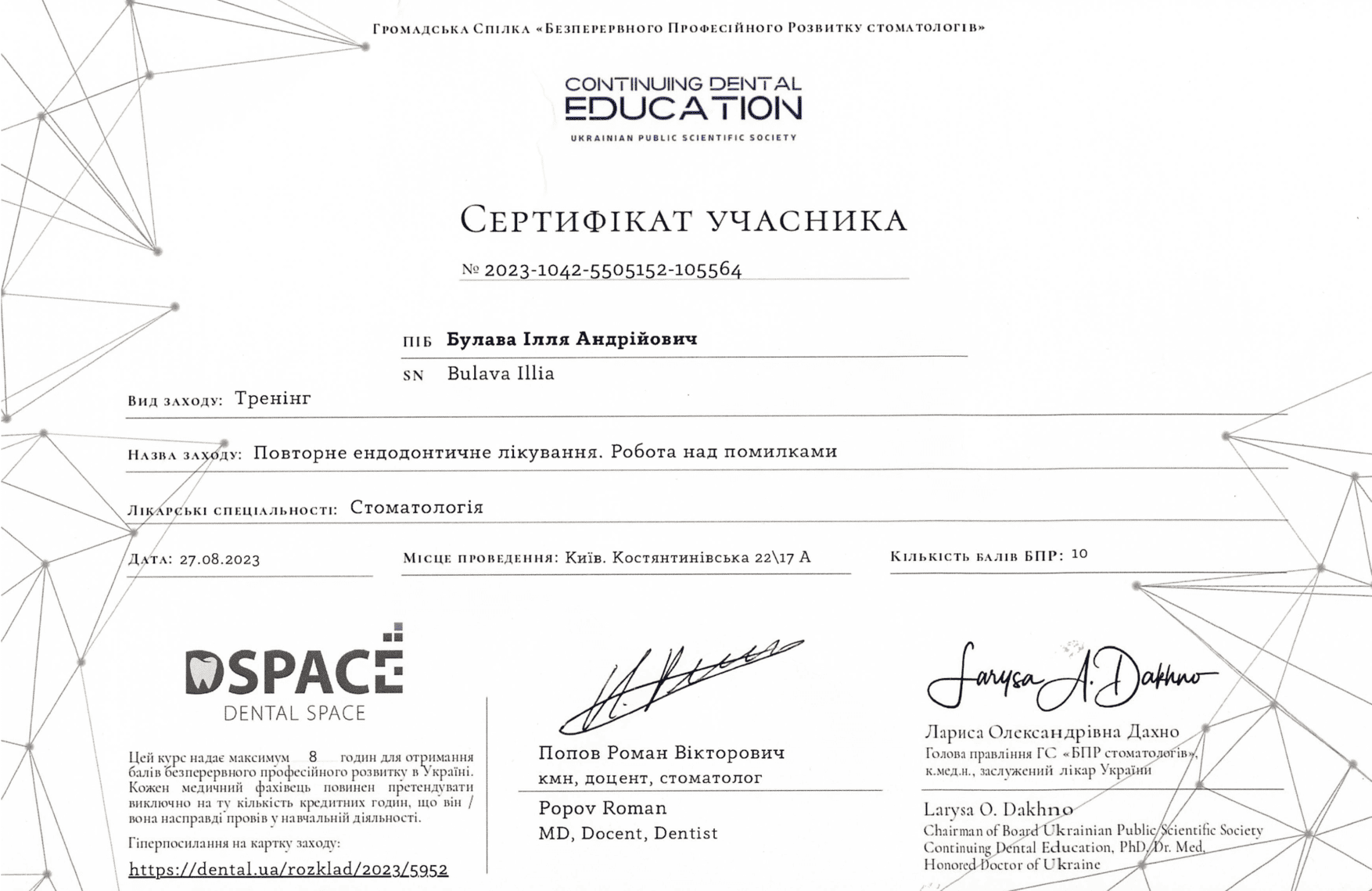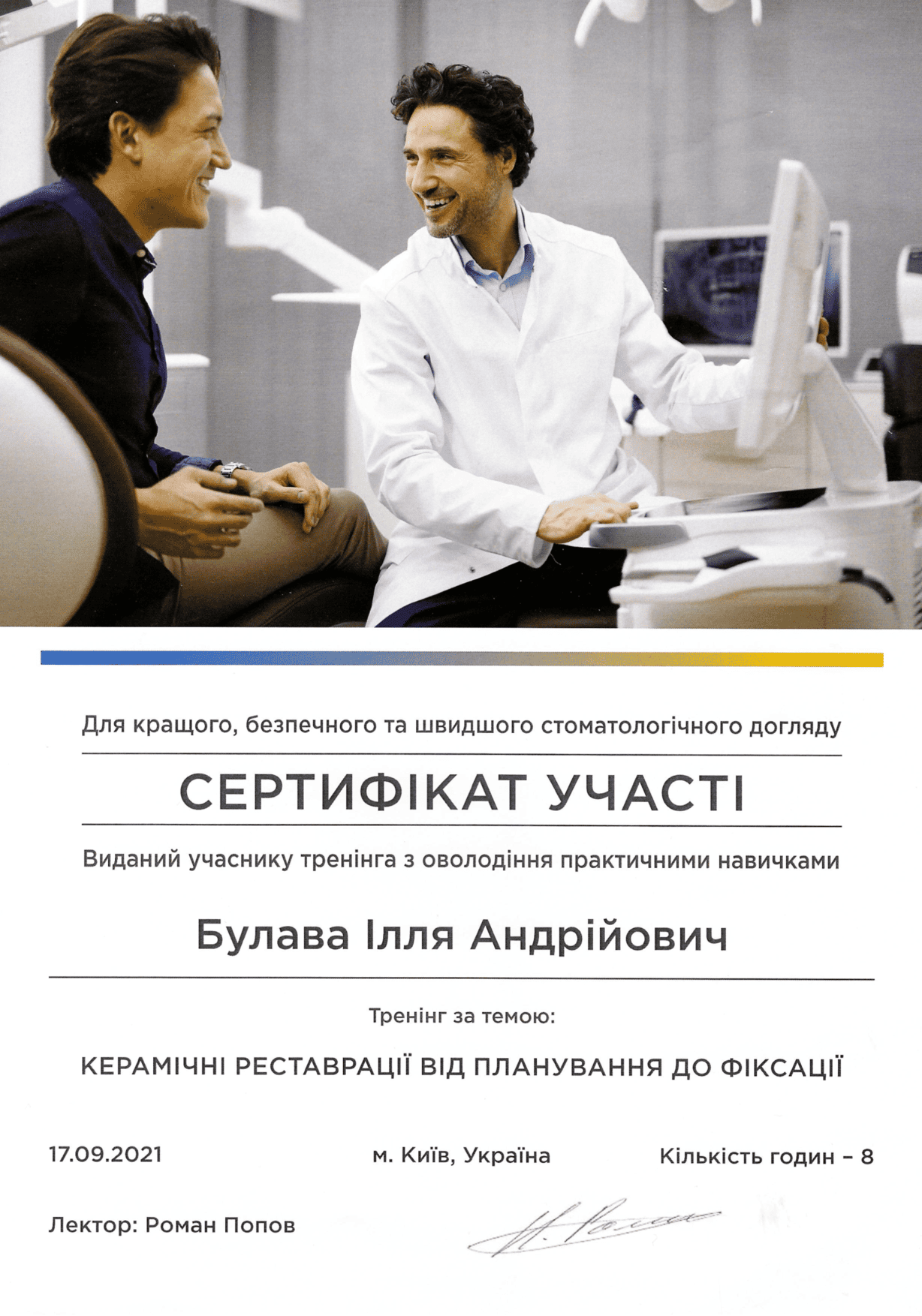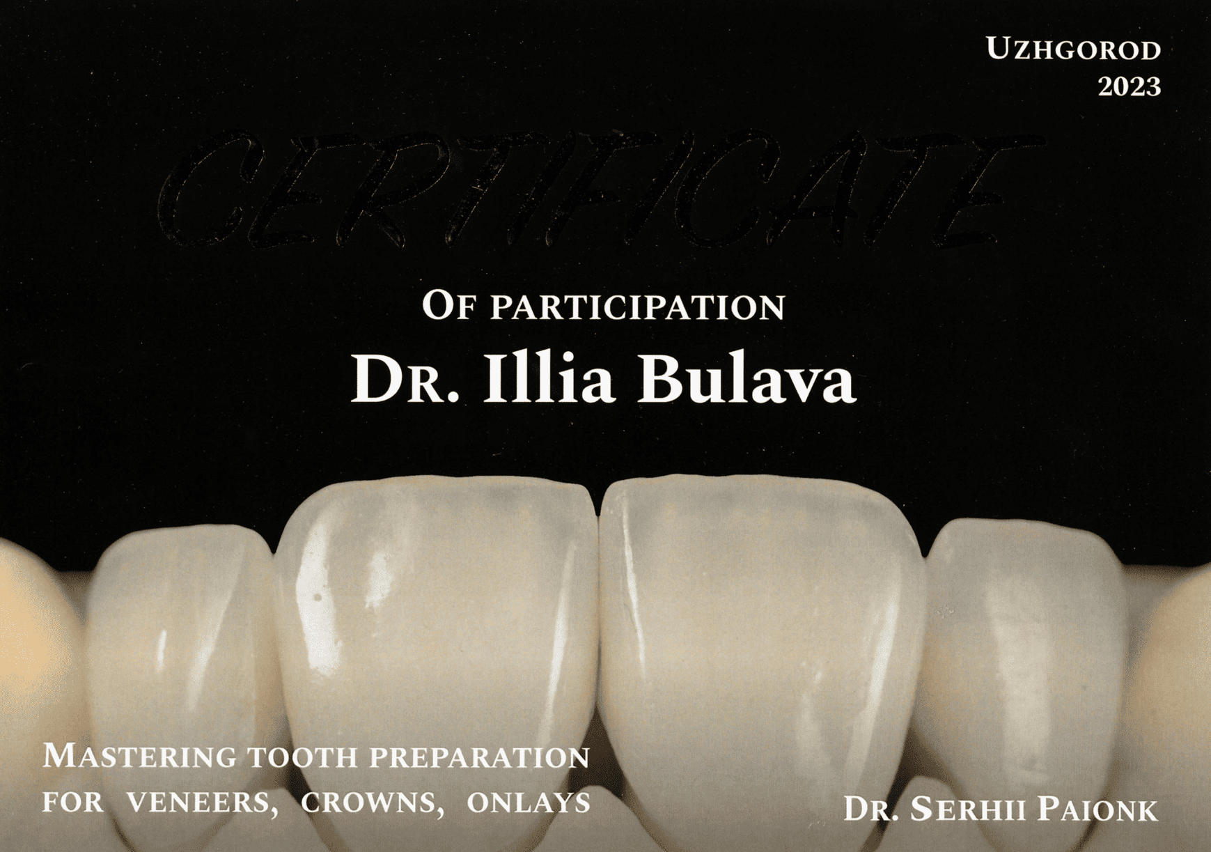 2023 — Kurs prywatny Serhija Paionka „Preparacja pod rekonstrukcje ceramiczne: licówki, korony, onlaye”, Użhorod