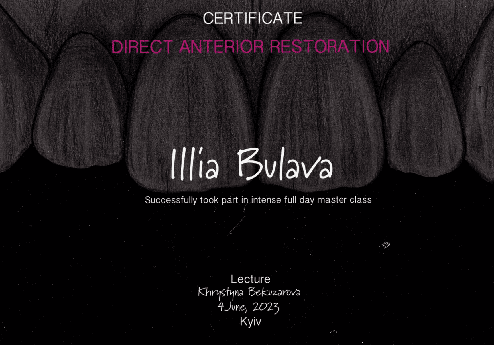 2023 — Kurs prywatny Krystyny Bekuzarowej „Bezpośrednie odbudowy zębów przednich”, Kijów