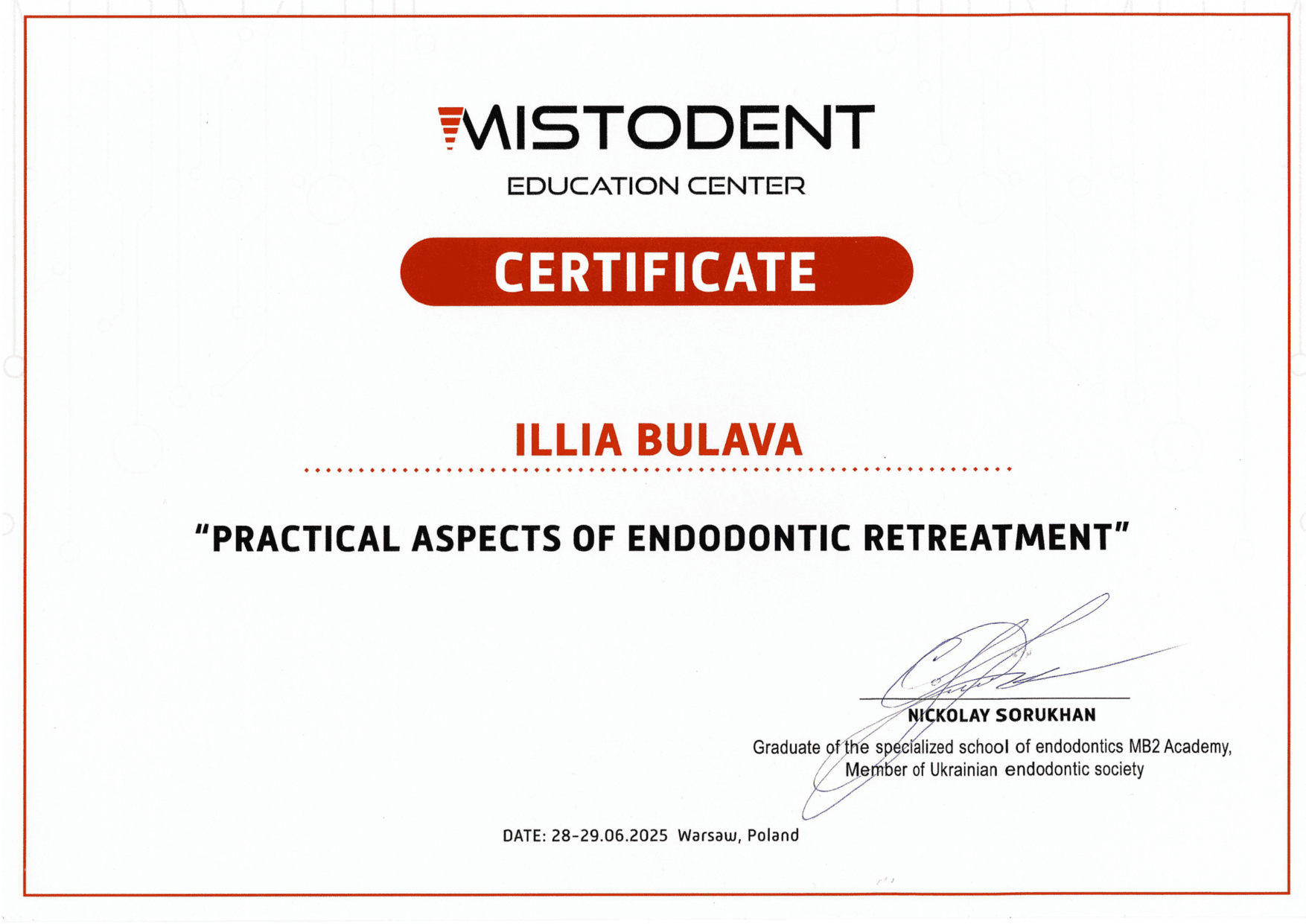 2025 — Autorski kurs Mykoły Sorukhana „Praktyczne aspekty ponownego leczenia endodontycznego”