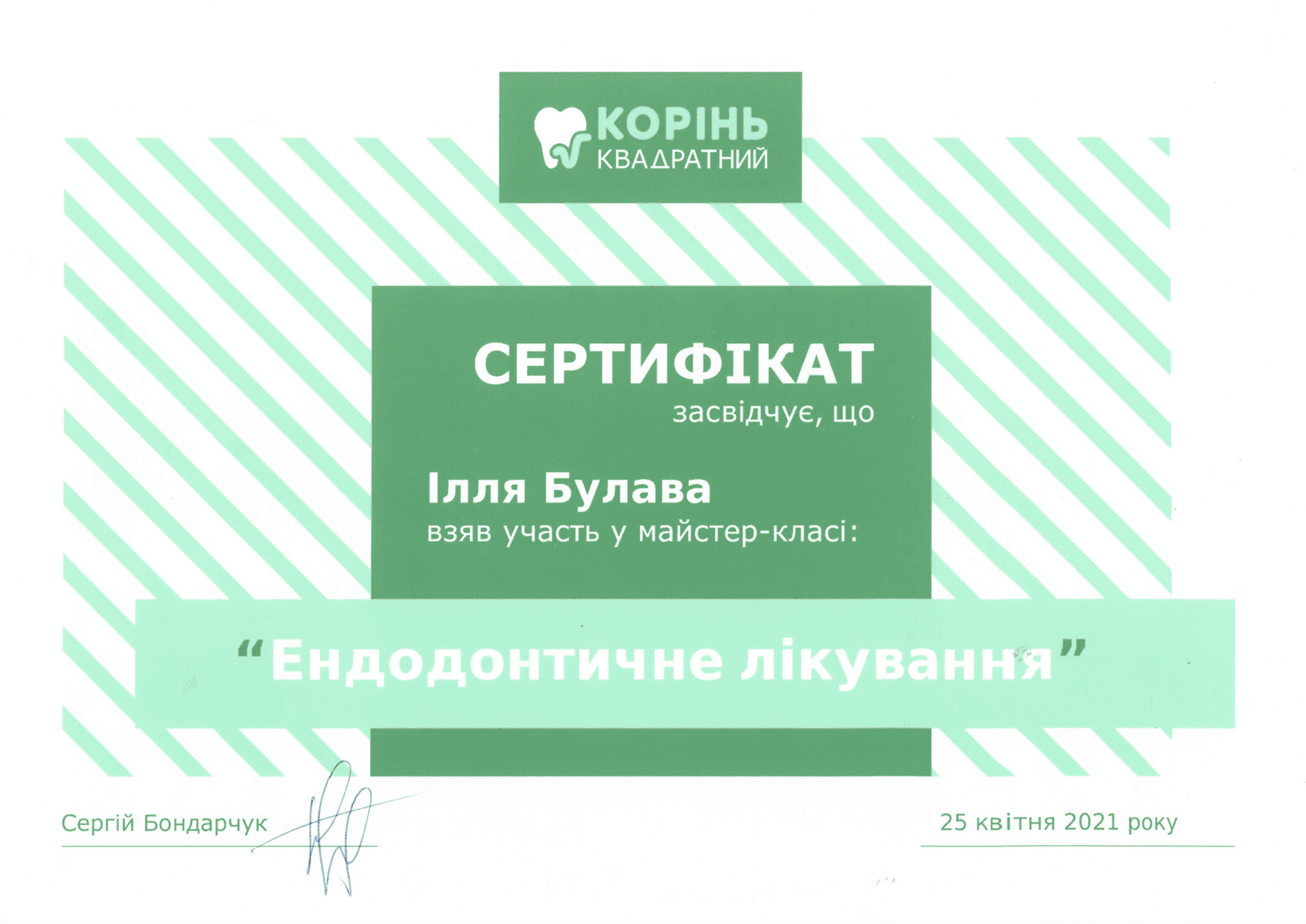 2021 — Kurs prywatny Serhija Bondarczuka „Leczenie endodontyczne”, Kijów